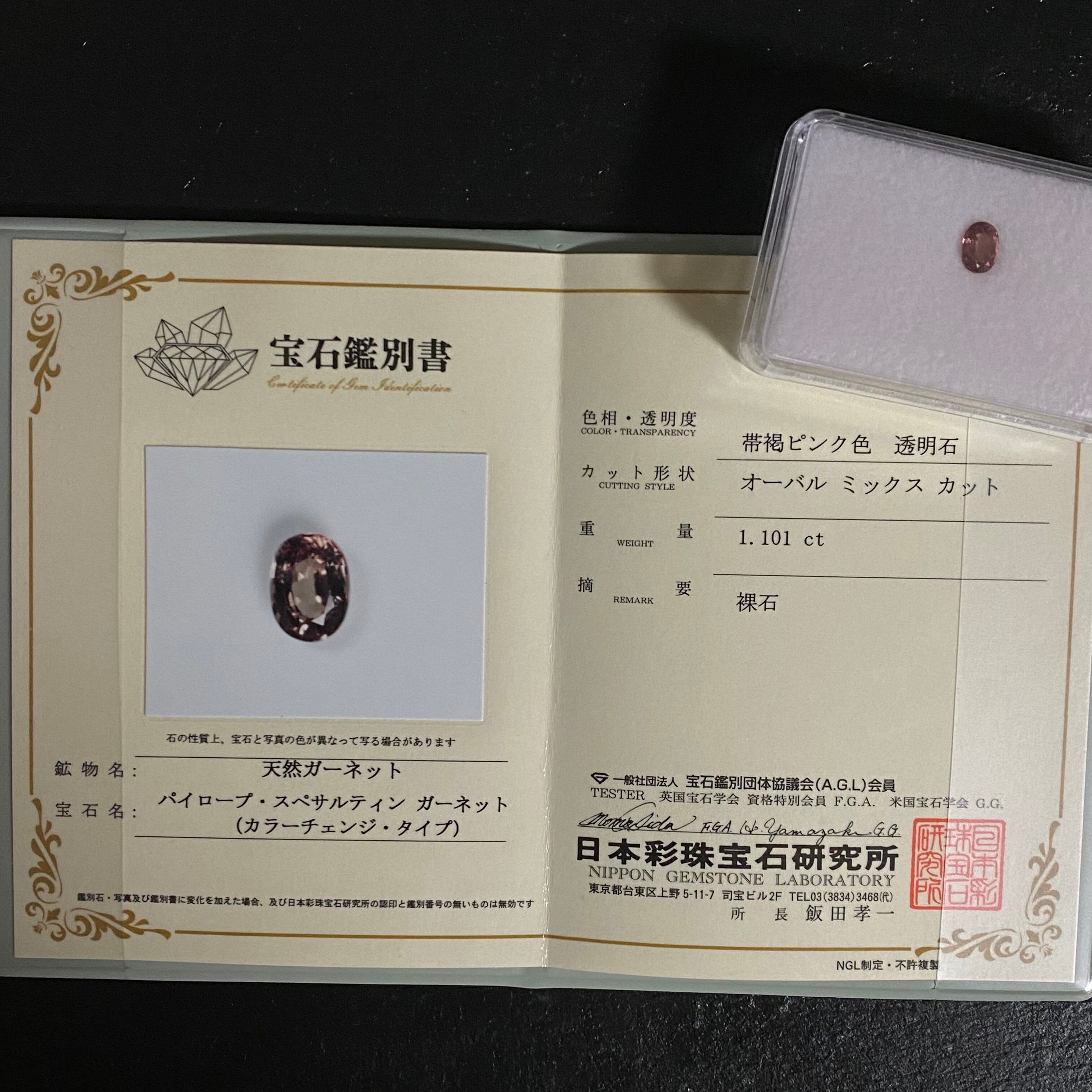 マラヤガーネット カラーチェンジ ルース 1.101ct ガーネット 宝石 GEM パイロープ スペサルティン ガーネット