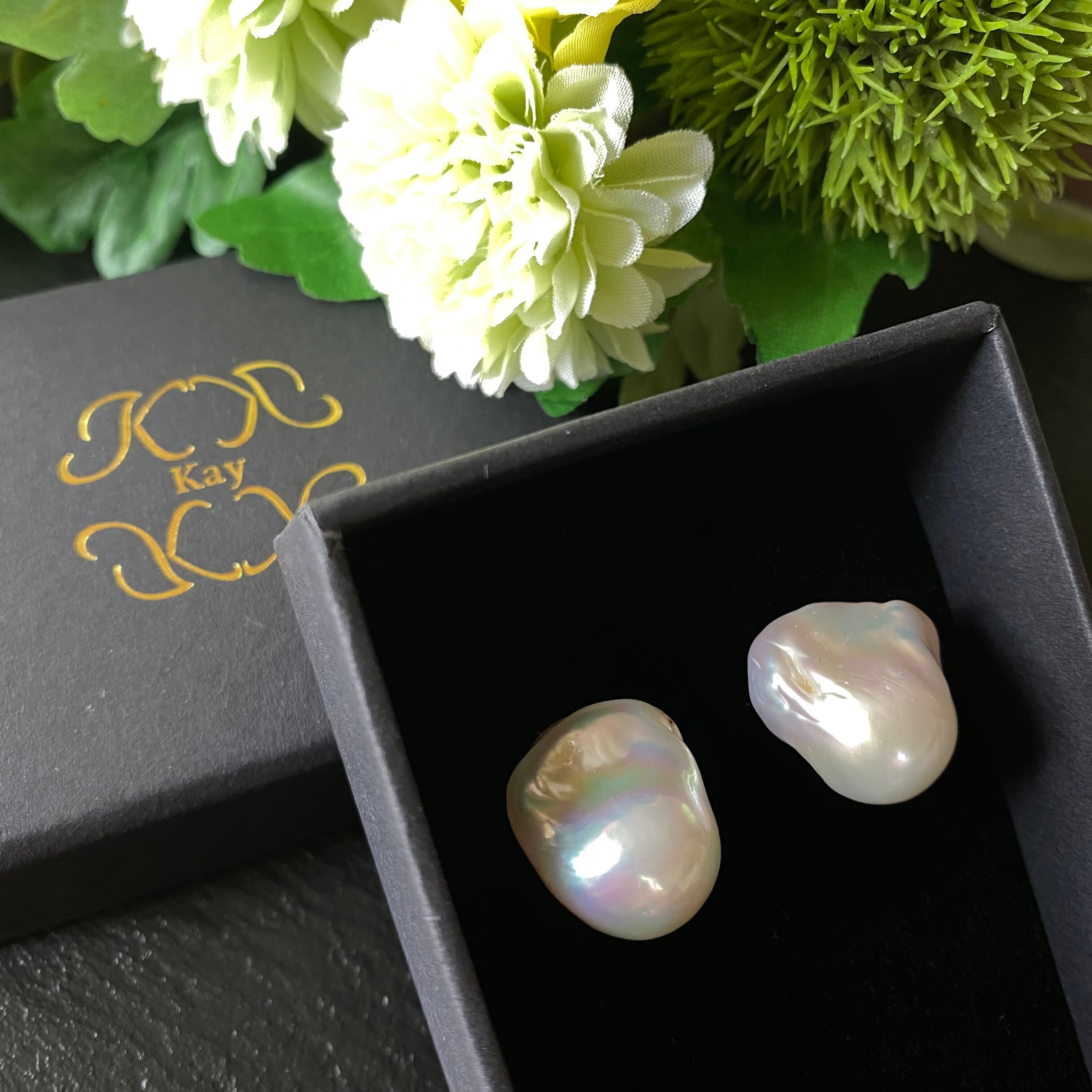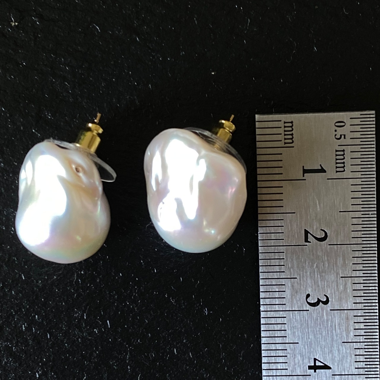 気品と華やかさのある、約18㎜の大粒バロック淡水パールのピアスです。