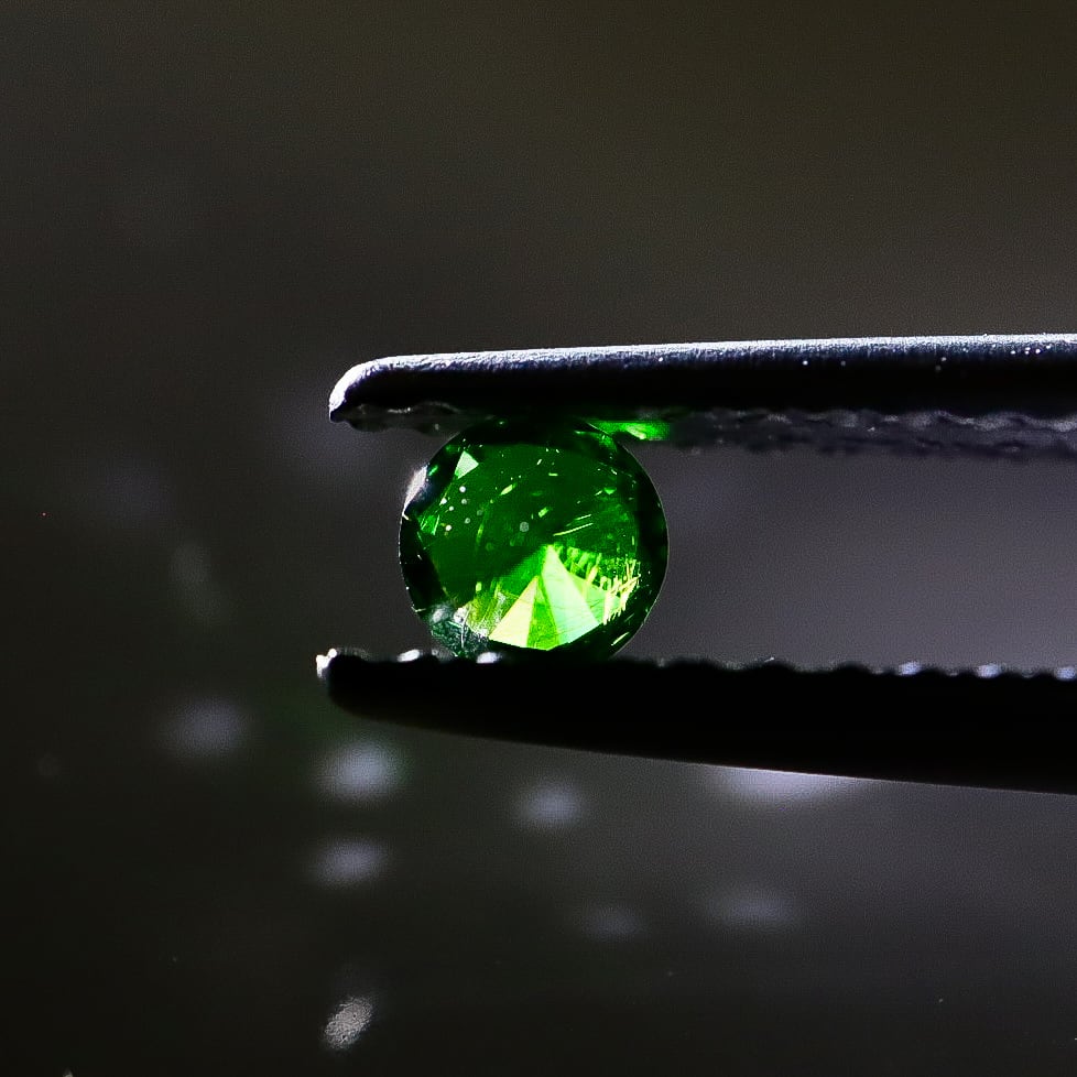 デマントイドガーネットは、ガーネットの中でも特に希少で、屈折率が高く、まるでダイヤモンドのような輝きを放つ宝石です。